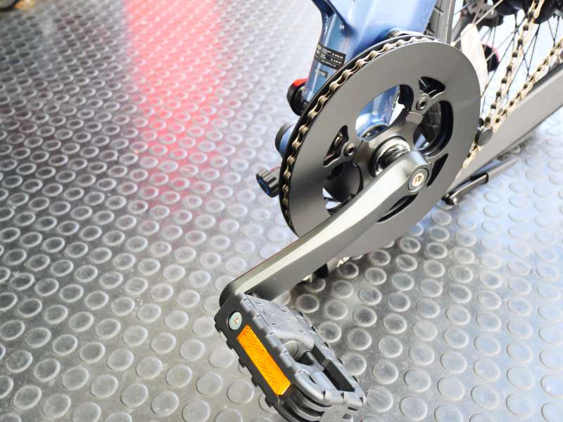 4. 左側のクランクを真下に向けておくことで、フレームの後ろ側を折りたたんだときに、右側のペダルがフレームに干渉しない位置に移動します。