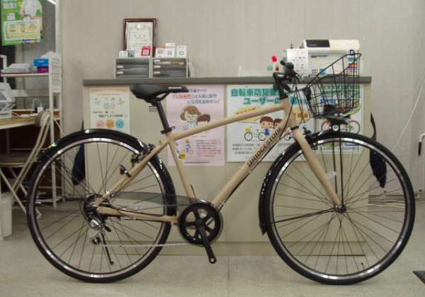 こんにちは、セオサイクル一ノ割です。 ただいま春のチラシ期間中です! 今回ご紹介する自転車はこちらです。 ブリヂストン エルビーワン デラックス(T.Xサンドベージュ) 27インチ 外装6段ギヤ アルミフレーム バスケット、サークル錠、ドロヨケ、スタンド、チェーンケース標準装…
