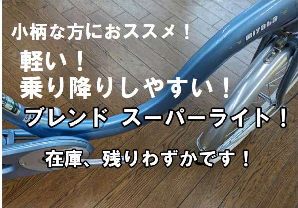 皆様こんにちは、セオサイクル平塚中原店です。 涼しくなってきて自転車でのお出かけが 気持ちの良い季節になりましたね~ いよいよ秋の自転車シーズンですね! ということで、本日は 小柄な方におすすめ! すごく軽くて、 乗り降りラクラク、 …