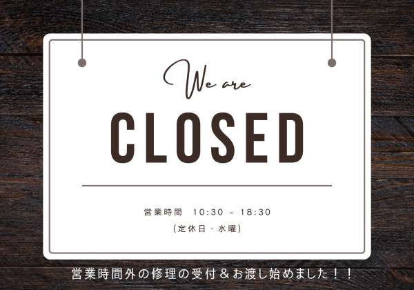 当店で自転車をご購入いただいたお客様限定で、営業時間外の修理受付を始めました! 朝、出勤、通学途中で壊れてしまった、家に引き返すと遅刻しちゃう、その辺に置いてゆくわけにもいかないし… お帰りの時間に壊れてしまってもう営業時間が終わっている… 平日は仕事や部活で朝早く、お帰り…