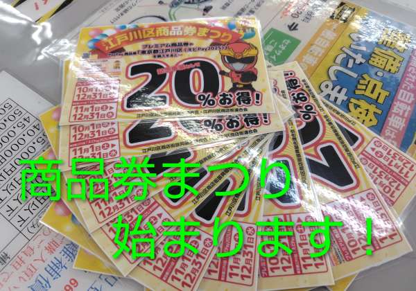 こんにちは西葛西店です! 既に呼びかけを何度かしていましたが。。。 今年もやります! 江戸川区商品券まつり! 10月1日より始まります! ※当店は水曜定休なので10月2日からご利用いただけます。 例年と違い商品券は事前に抽選の申し込みが必要です。 申込期間は8月31日で…