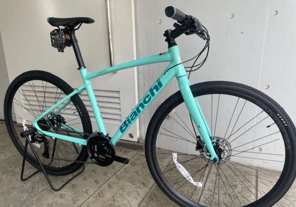 幕張ベイタウン店です ビアンキ C-SPORT2 メーカー希望小売価格 税込み 96,800円 CK16(チェレステ)、ホワイトサンドともに47サイズ 太めのタイヤ、油圧ディスクブレーキで安定感のある走りのクロスバイクです! Vブレーキ仕様のC-SPORT1…