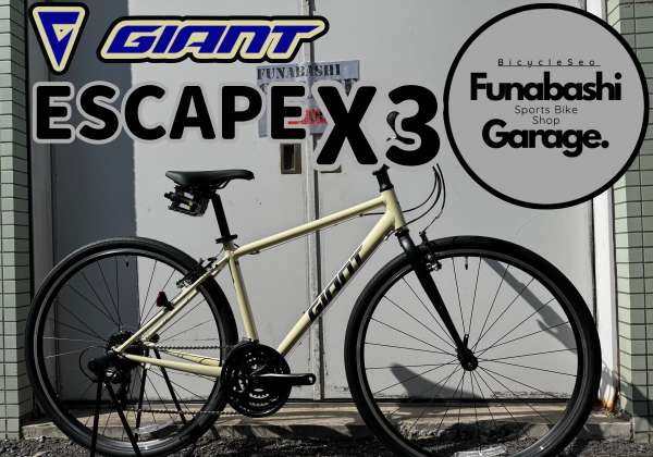 こんにちは、あるいはこんばんは! 船橋ガレージです! 今回は…GIANTのニューモデル!! 『ESCAPE X3』の紹介!! -細身のフレーム/フォークに太いタイヤ、見るからに乗りやすそう。- GIANT Escape X3 メーカー希望小売価格 税込み 59,950円…