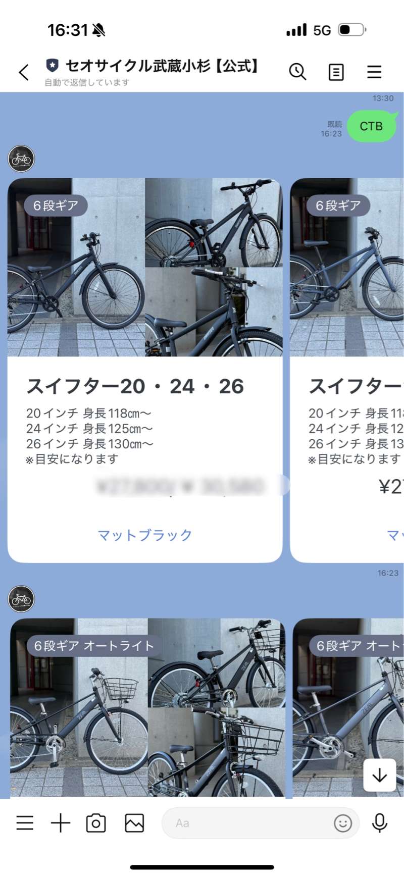 当店の公式LINEからワタクシ店長上野が『自分の子供にこれなら安全に乗せられる!』という基準で仕入れた、ボーイズ向け自転車の在庫と販売価格、カラーを見られるように致しました!