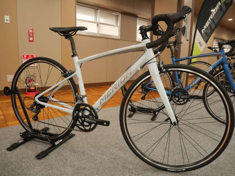 ハンドル幅は、芯‐芯で400mm(フレームサイズ50cm)です。また、ブレーキ/シフトレバーにはシマノ・クラリスのSTIレバーを採用しており、手元での変速操作も軽く、簡単に行えます。