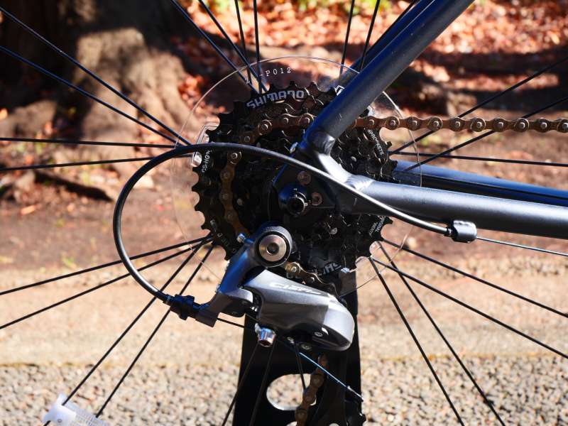 クランクセットを除き、メインコンポーネントには先述のシマノ・クラリスを採用しています。変速段数は、前2速(50-34T)×後ろ8速(11-32T)。