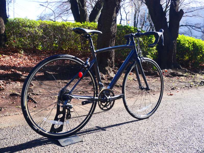 ロードバイクの入門モデルとして定番でありながら、軽量なアルミフレームにカーボンフォーク、扁平形状ステーによる振動対策など、「長距離を快適に走るための設計」が随所に施されています。