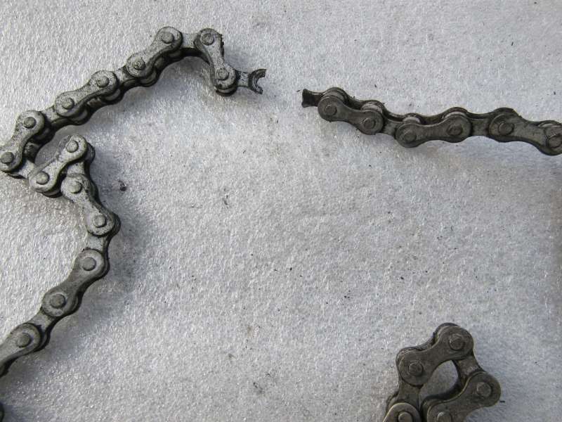 チェーンのプレートと呼ばれている部品が破損しています。実をいうと私もつい最近チェーンを切ってます。帰宅途中だったのですが幸い当店が近くすぐに直せました。たまたまなのか今月に入りまして毎日のようにチェーン交換をしております。
