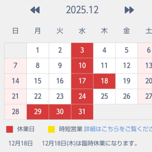 ○12月の休業日のお知らせ