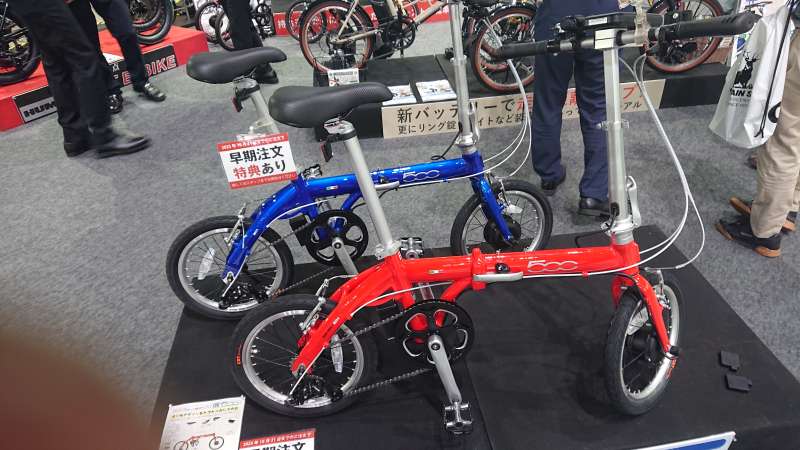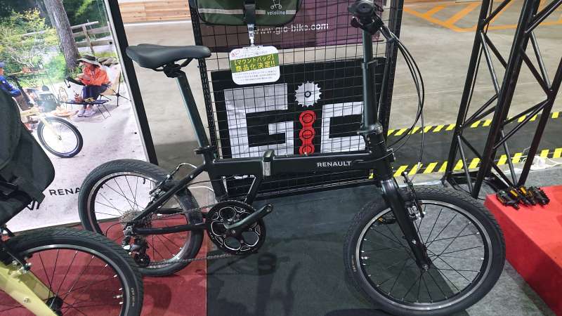 ↑同じくGICさんのブースにあった、小型の電動アシスト付き折り畳み自転車
