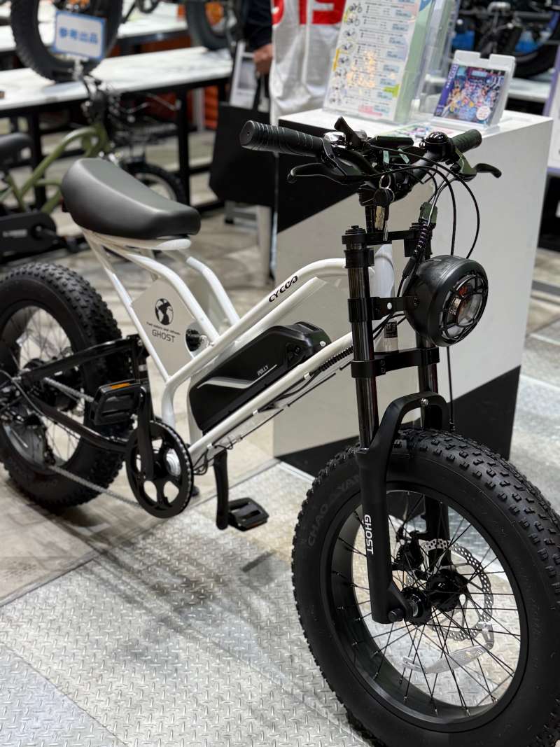 認可済みのカッコイイ電動自転車です!駐輪場のレールに入らない?ええ、もちろん入りません!!利便性を無視したカッコよさに全ぶりしたモデルですから!!