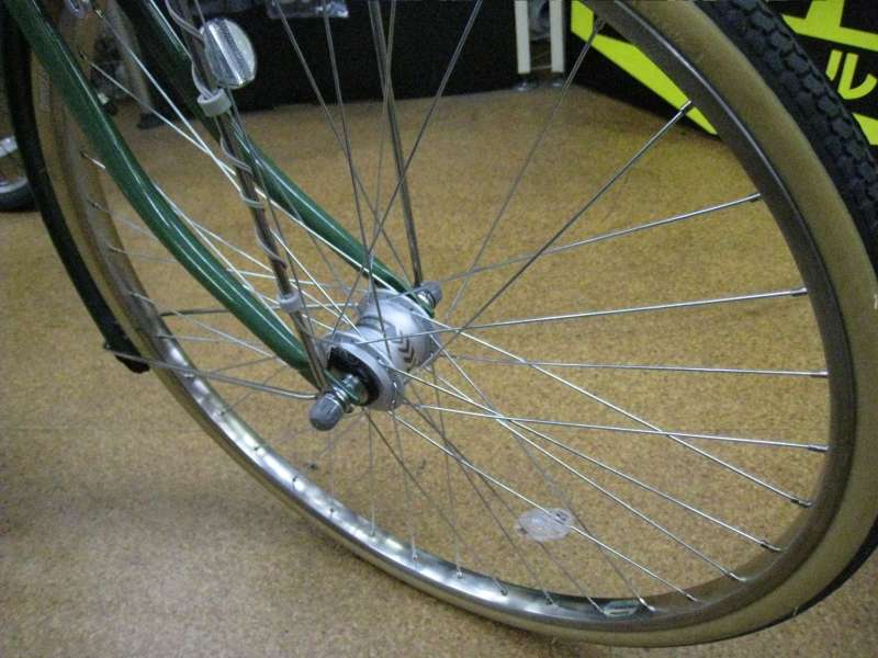 ↑前カゴ同様錆びに強く丈夫なステンレス製リム(車輪の輪っか)