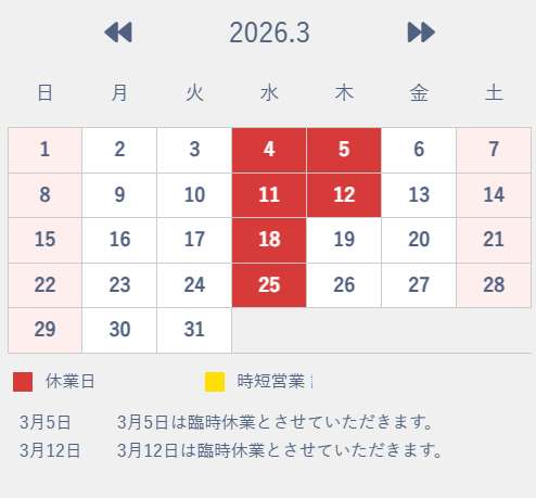 3月の営業日のご案内となります。