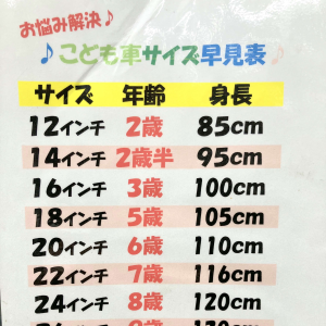 「この自転車で、この子に合う大きさありますか?」といっていただければ問題ないです