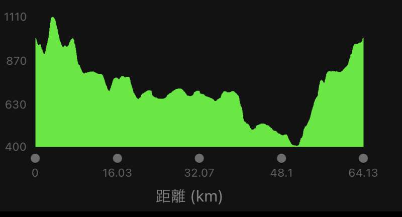 出発地点の標高がおおよそ1000mで、少し下って400mほどから出発地まで戻るのでほとんど