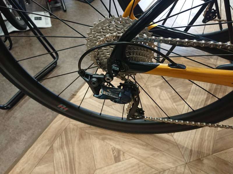 リムブレーキモデルは海外仕様なので後ろの歯数が11-34Tとなっています。逆にありがたい方も多いのではないでしょうか?私は断然こっちです(笑)