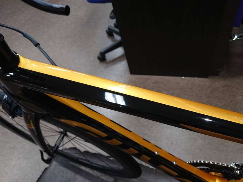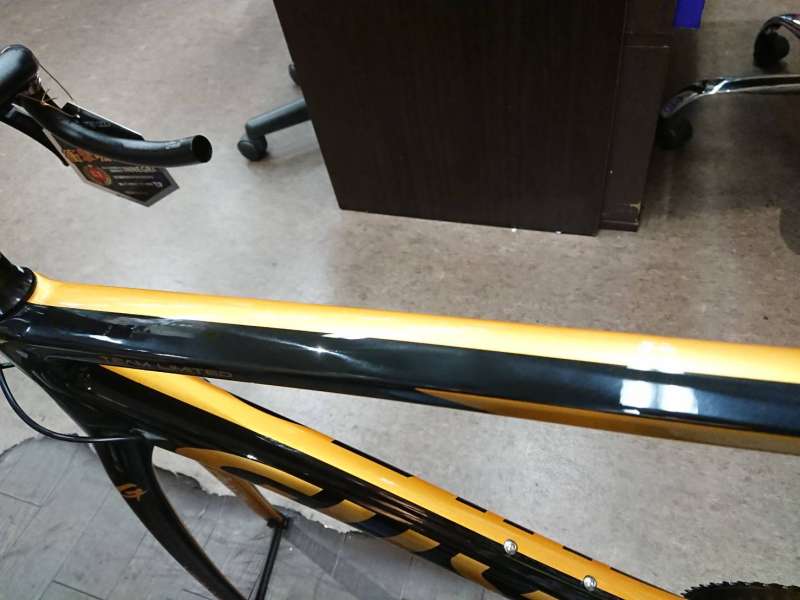 今回入荷してきた便はトップチューブの塗装が曇りがち・・・。梱包の問題なのかもしれませんね。ピカピカになるまでポリッシャーで磨き上げました。うん輝きが違うな。