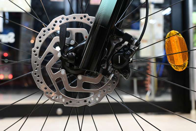 フロントサスペンションはロックショックス。スルーアクスルではなくクイックタイプですので、後のカスタムの楽しみも残っています。