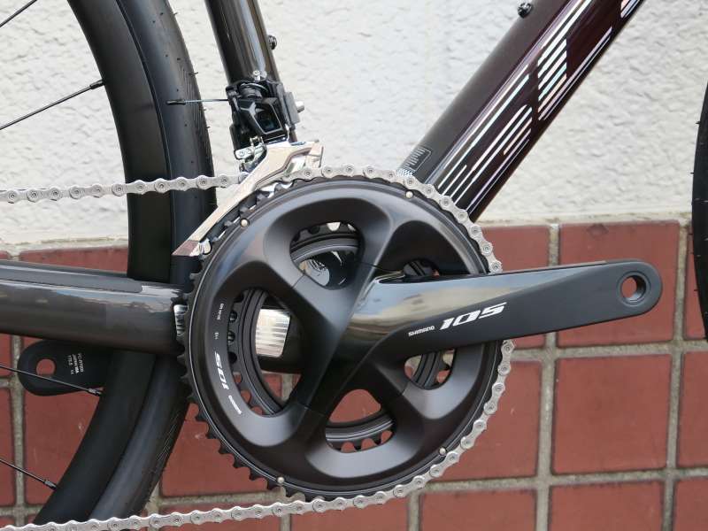 価格を下げるために他社のクランクを採用するメーカーが多い中、こちらはクランクまで105なのはうれしいポイント!