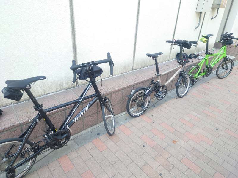 輪行の相棒はわたくしの一押しブランド「TYRELL」が手掛けるフォールディングバイク「FSX」です。軽く良く進み走りの性能は申し分なし!折り畳みの仕方は少し特殊ですが慣れれば数分で畳めます。この日はお客様にお付き合いいただいたので3台のTYRELLが集まりました。