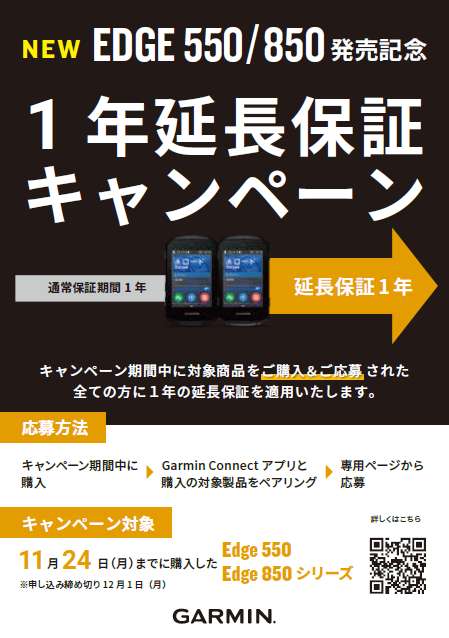 さらにさらに25年11月24日までに購入し専用フォームから申し込みをすれば通常1年間の製品保証が2年間になる「1年の延長保証キャンペーン」も行われます。両方のキャンペーンを受けることが可能なのでめっちゃお得に「GARMIN」をゲットしちゃいましょう!