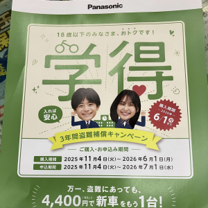 現在、パナソニック製の電動アシスト自転車(ギュットシリーズを除く)を、18歳以下の方が、