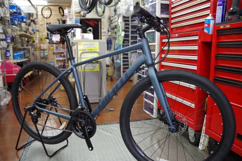 ジャイアント グラビエは、クロスバイクらしいのハシリの軽さを失わず、クロスバイクにしてはちょっと太めのタイヤを標準装備した安定性重視のスポーツクロスバイク。