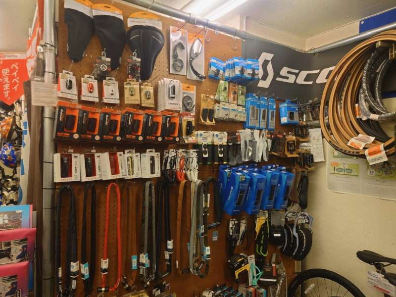 クロスバイク、ロードバイク、マウンテンバイク、ミニヴェロ用の鍵やライト、バックミラー、サドルカバーなどすぐにお求めいただけます!