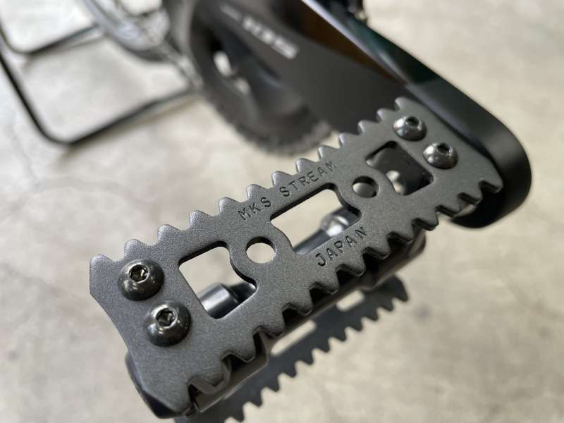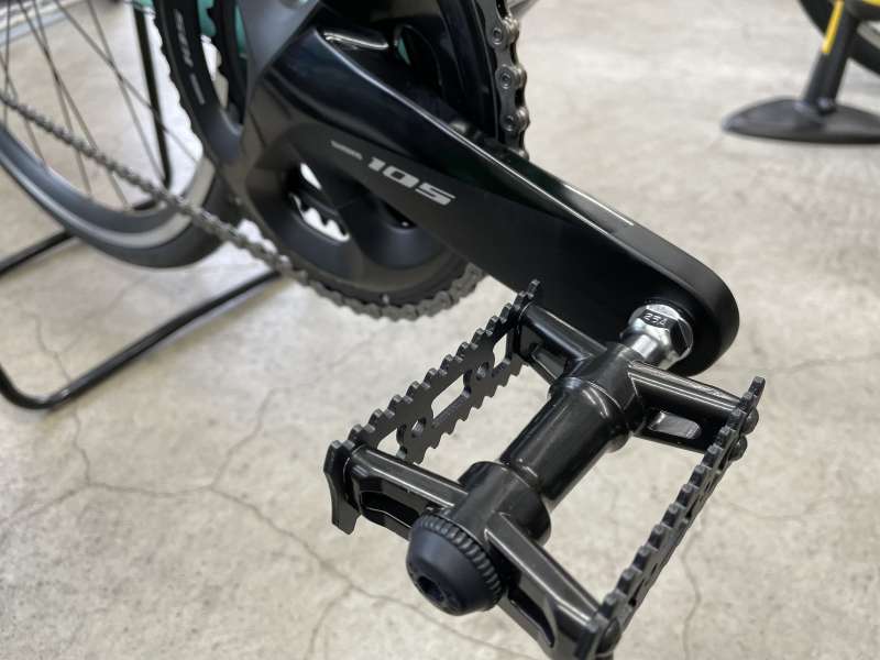 ペダルはいずれビンディングにもと興味がありましたが通勤で使いそうとのことで精度の高いフラットペダルをチョイス。