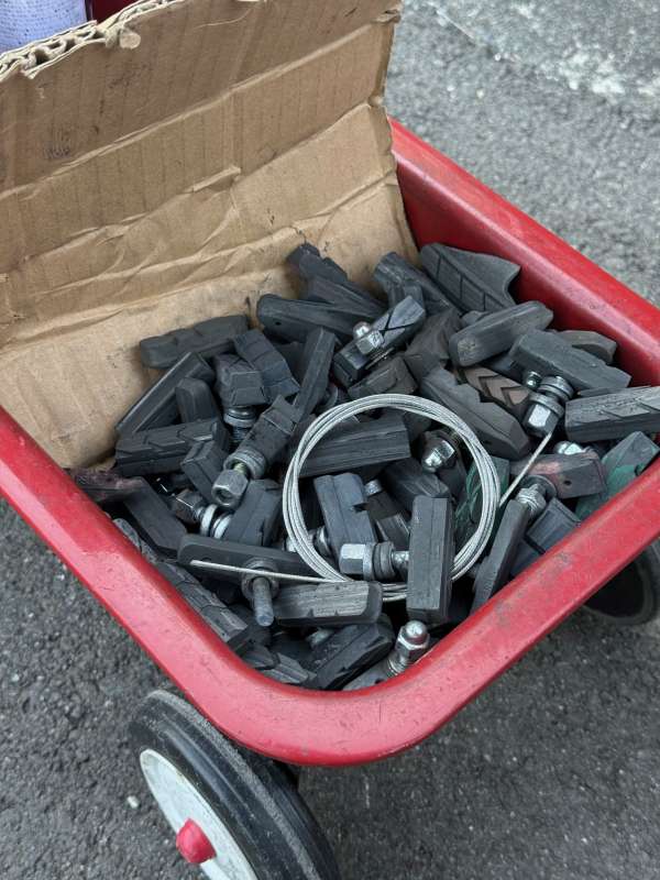前回からサービスで行っているブレーキゴム交換。200台のうち70台のブレーキゴムがすり減っていました!雨の日も風の日も毎日チャリ通する学生さんの自転車は痛みがとてもはやいです。普段ならまだ交換しないゴムも予防的に交換しておきました!タイヤの空気もほぼすべての自転車に充填して感動して帰る生徒さんをほほえましく見送りながらの二日間でした。