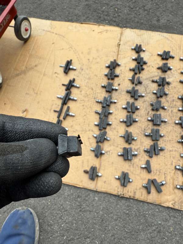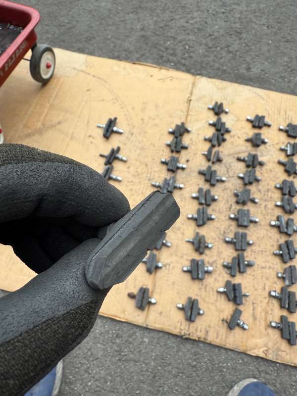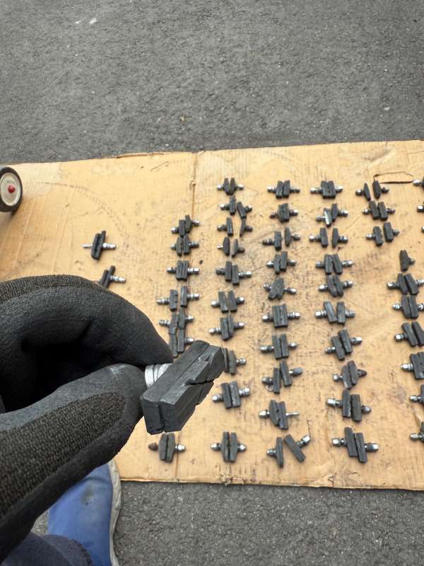ブレーキのゴムはこうなっていたら交換した方が良いです。溝がなくなっている↓