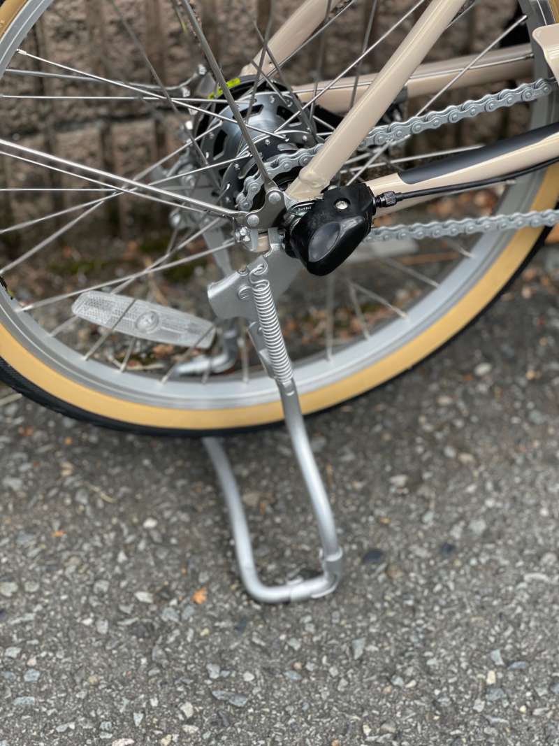ハンドルもアルミ製で高級感あります。ブラウンのグリップもおしゃれですね!ブレーキレバーには滑り止めのラバーがついています。