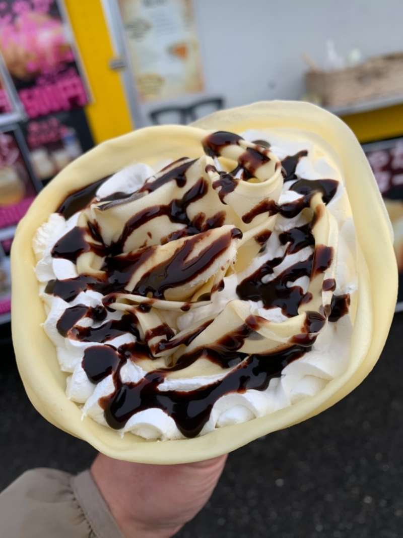 会場では、ケータリングのハンバーガーやクレープを食べたり、レースの応援をしたりと、