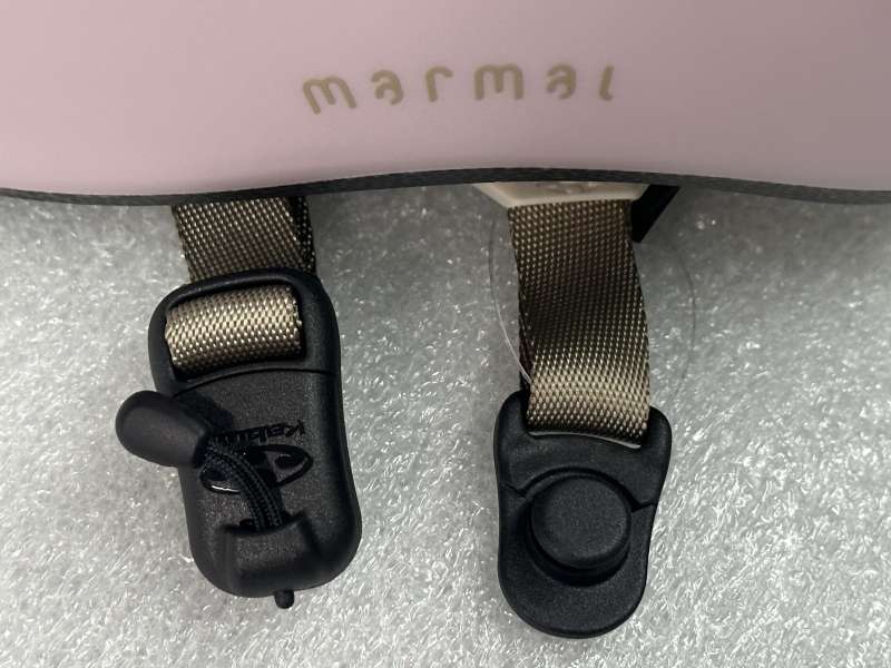近づけるとぱちっとはまって、外す際はバックル部の紐を引っ張ると簡単に外れます。