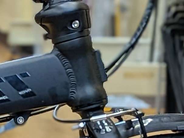 ヘッドチューブにはバスケット、ラック取付用の台座あり!