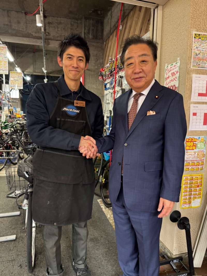黒服と警察の方がウロウロしてるなぁ、、、と思ったらまさかの野田佳彦議員登場!POPに高市首相の「働いて×5」のくだりを入れていたのでばつが悪かったですね~(笑)。