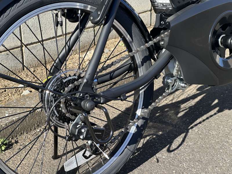 20インチの小径タイヤに7段変速、フロントキャリア装備です。