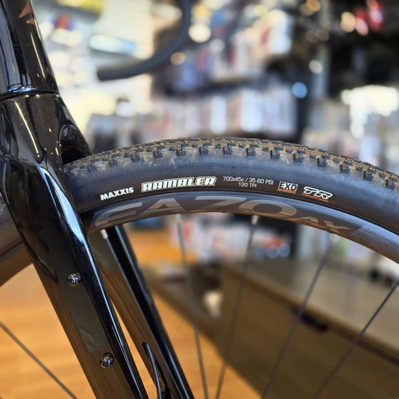 タイヤはオンロード、ダートともに転がりの良いMAXXIS Rambler 45C採用。