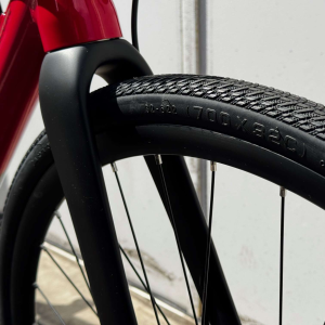 標準では舗装路で軽快な32Cタイヤを装備していますが、最大40Cまで装着可能! タイヤを太くすれば、キャンプツーリングや軽い砂利道(グラベル)も楽しめるタフなバイクに早変わりします。