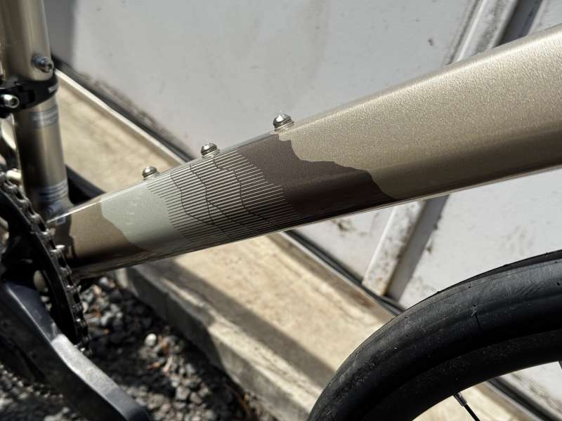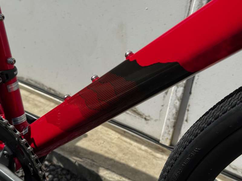 ダウンチューブにあしらわれたデザインは、遠くの山の稜線をイメージ。