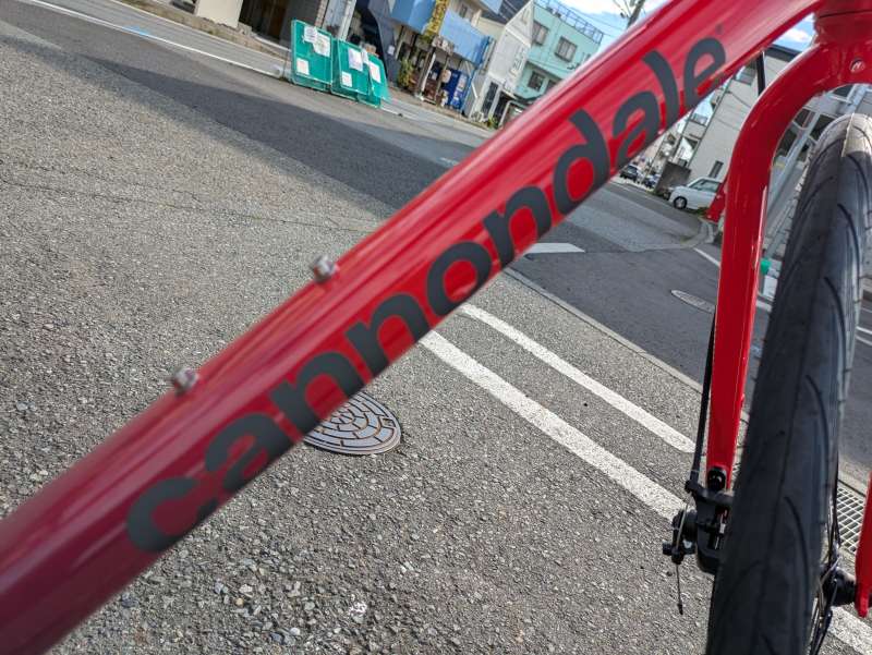 キャノンデールのロゴ、フレーム各所に反射材を配置することで夜間のライドも安心♪