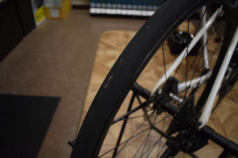 タッチアップした部分写真撮り忘れました!地が出るほど傷んでいたタイヤは走り良くパンクにも強い「GP5000TR」にしました。少々値は張りますが良いタイヤです。