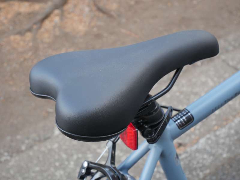 サドルは一見するとスポーティーなデザインですが、実際に座ってみると柔らかく、普段着や制服で使用した際にもお尻が痛くなりにくい配慮が施されています。