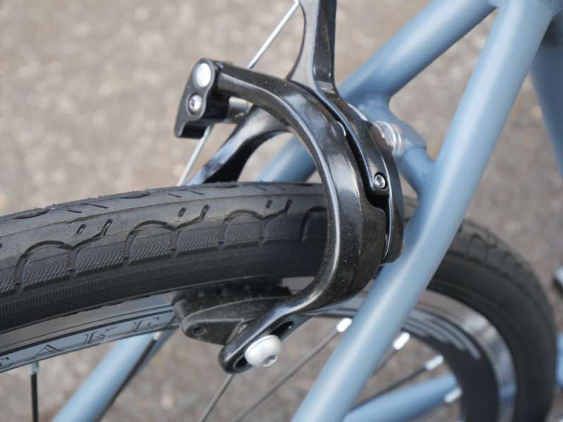 ブレーキはキャリパーブレーキを採用しています。クロスバイクで多く採用されているVブレーキと比較すると制動力は控えめですが、街乗りでの速度域では扱いやすく、細かなスピードコントロールがしやすいのが特長です。