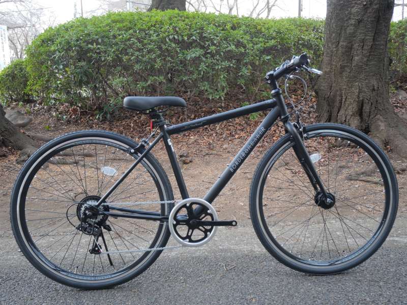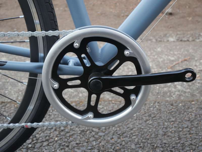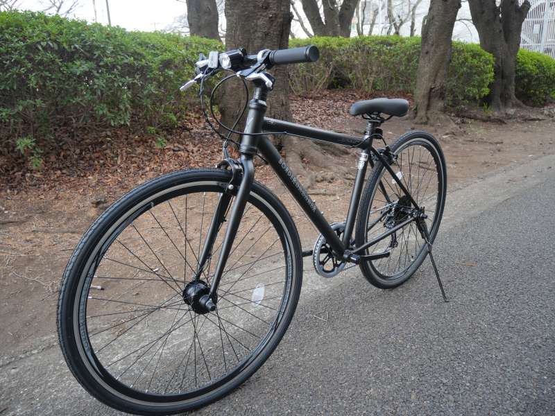 フレームにはスチール素材を採用し、車体重量は14.5kgです。アルミ製クロスバイクの平均的な重量である10〜12kg台と比較するとやや重めですが、一般的なシティサイクル(約18kg)よりは軽量に仕上がっています。
