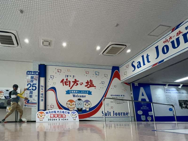 は、か、た、の、しお、の工場に遊びにきました