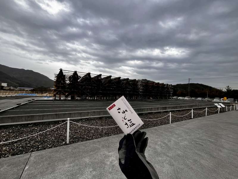 工場裏にある再現された流下式枝条架併用塩田