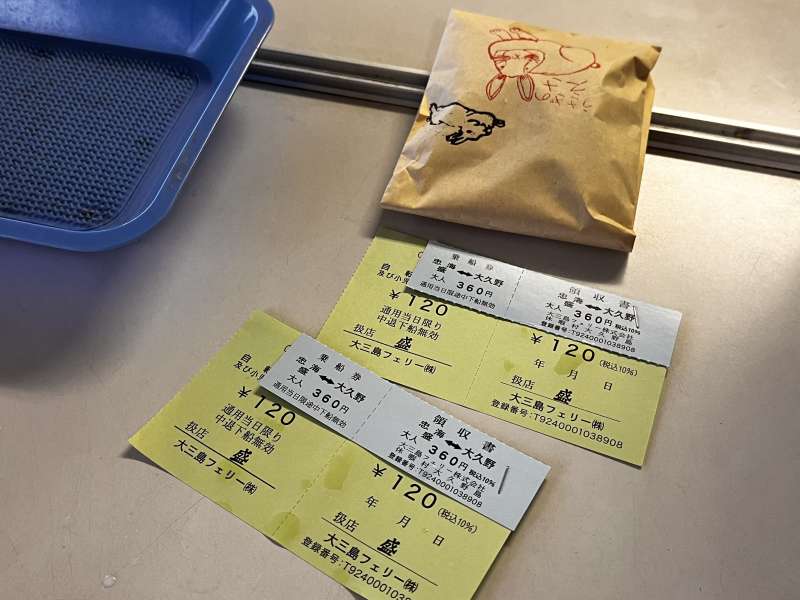 大久野島に行くフェリーのチケットを購入しました