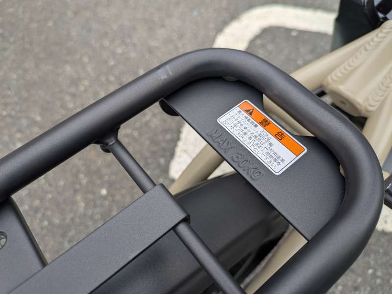 積載を得意とするこのキャリゴーはリヤキャリヤは耐荷重30㎏、フロントキャリヤは耐荷重6.6kg