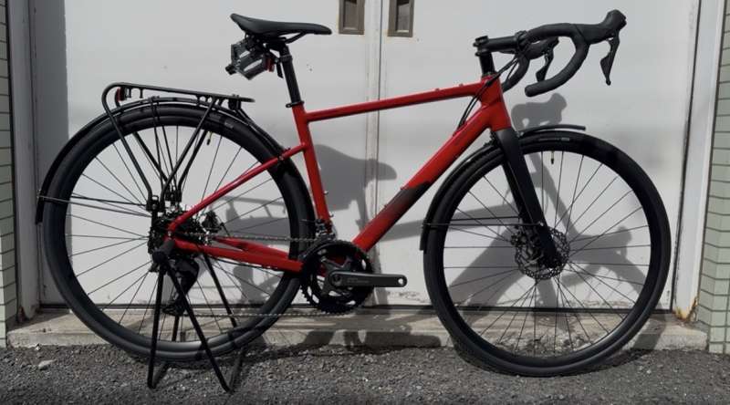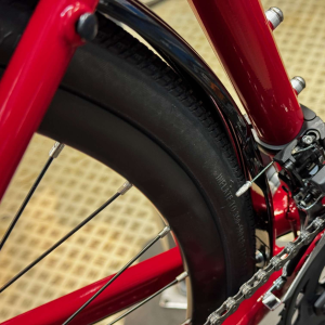 ロードバイクには珍しく、前後フェンダー(泥除け)やリアキャリアの取り付け台座を完備。 平日はスタイリッシュな通勤バイクとして、週末は荷物を積んだ旅の相棒として、ライフスタイルに合わせて姿を変えられます。